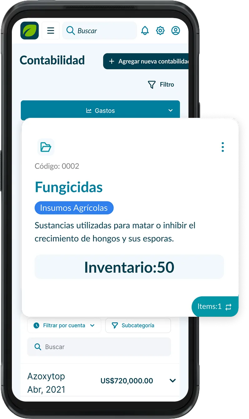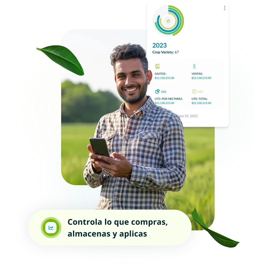 Llevar el control total de lo que compras, almacenas y aplicas en cada lote.