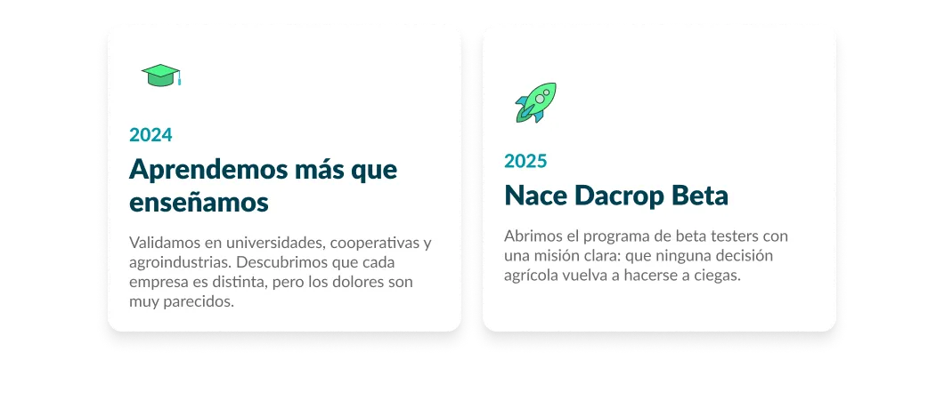 Dacrop nació al caminar empresa, no desde un escritorio. Recorriendo cultivos de café,