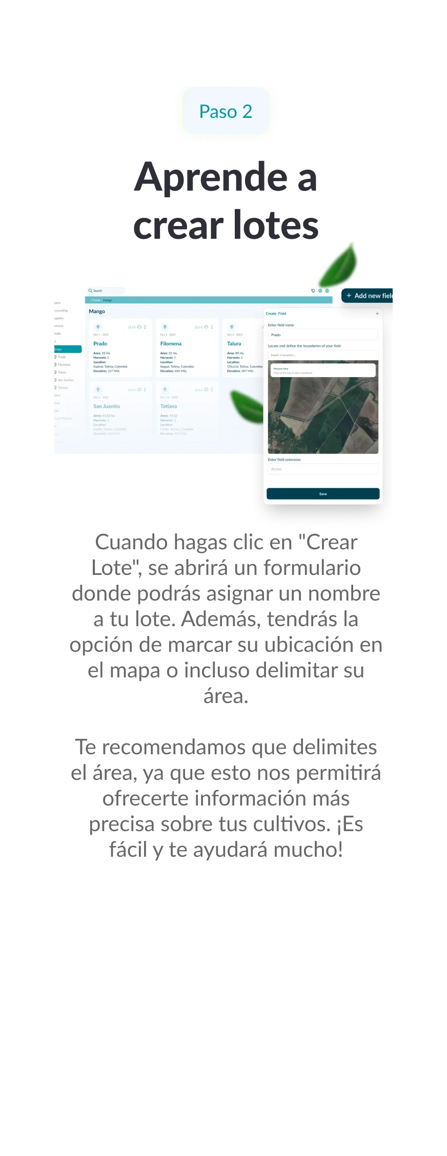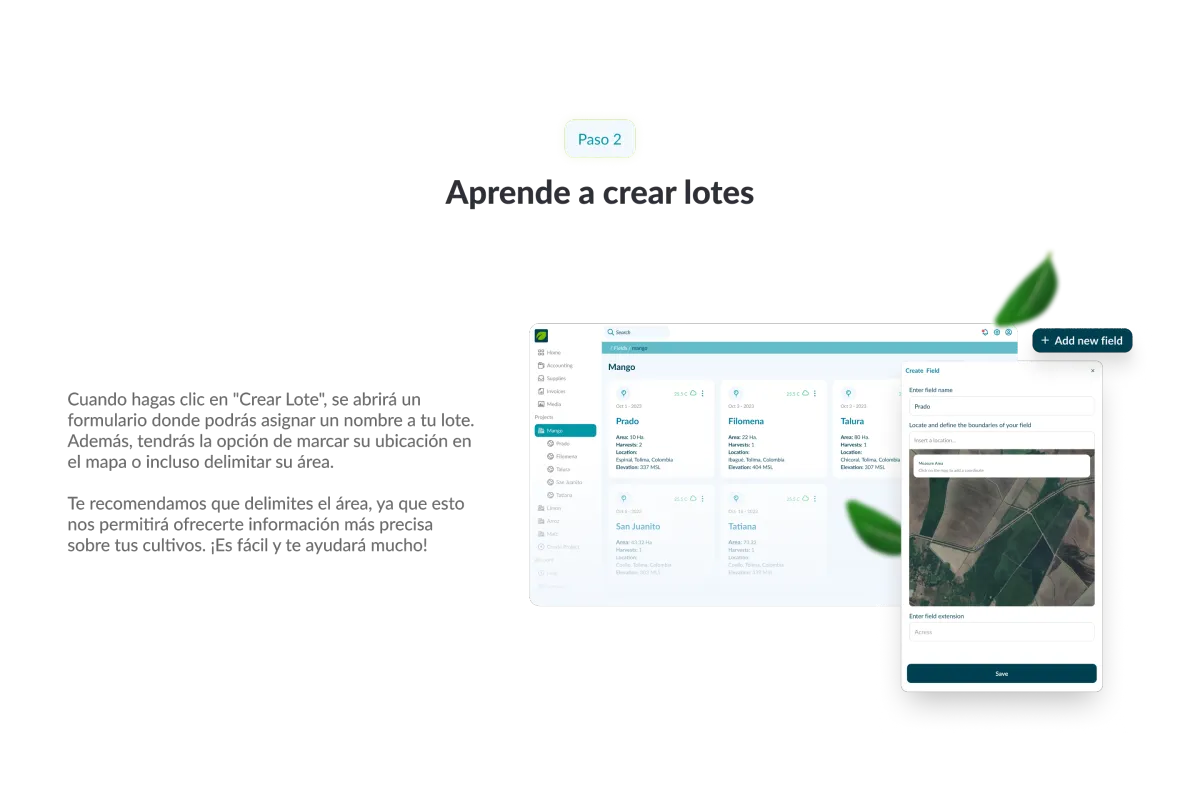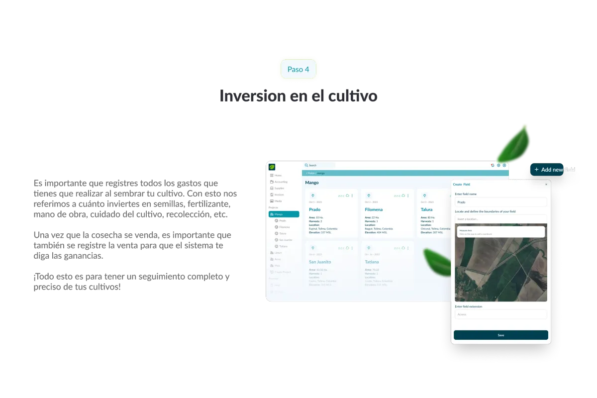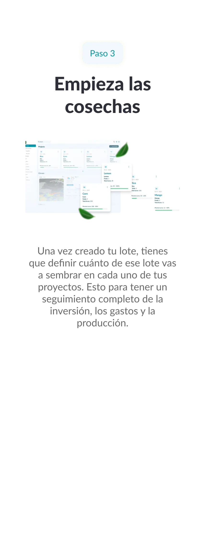 Crear proyectos personalizados según el cultivo (arroz, maíz, café, etc.)