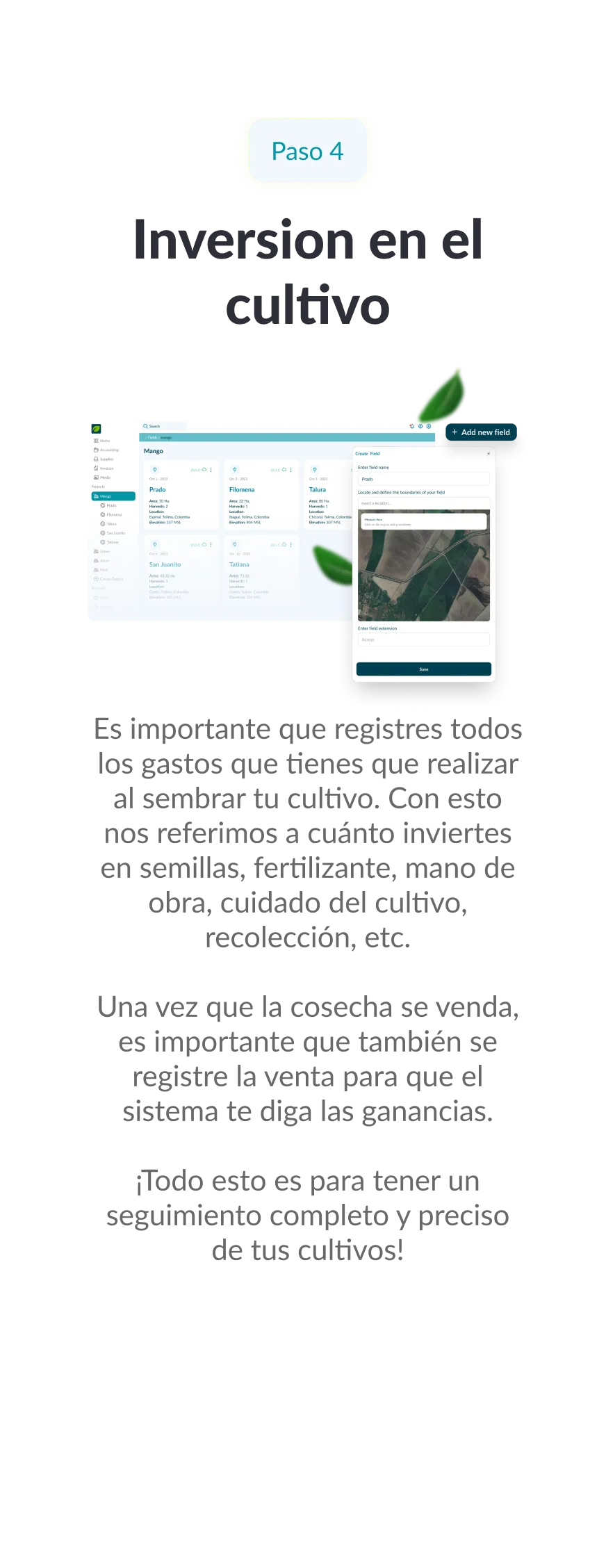 Separa cada gasto por proyecto, lote o cultivo, para saber qué actividad está siendo rentable y cuál no.