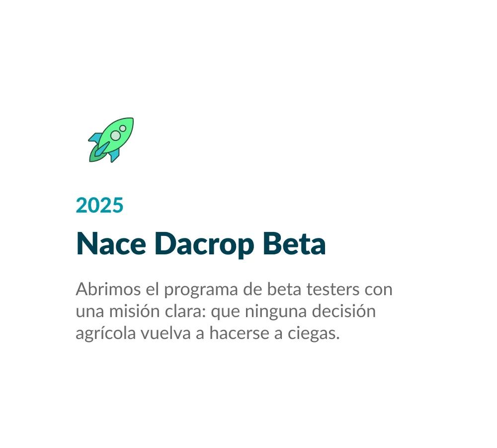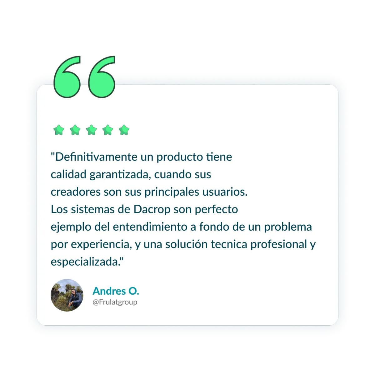 ¡Hola! Me llamo Sergio. Soy agricultor y desarrollador comprometido con la solución de desafíos agrícolas globales. Somos un equipo pequeño —soy el único empleado de Dacrop— así que tu contribución realmente importa 🙂. Apenas estamos comenzando, y tengo algunas ideas interesantes en desarrollo. Si lo pruebas, por favor hazme saber lo que piensas, ¡lo