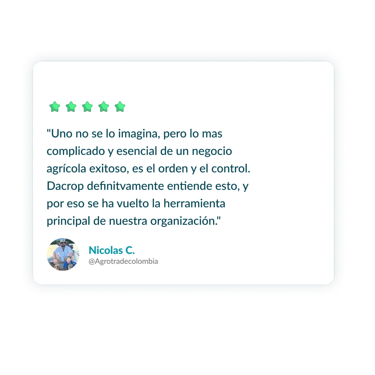 dacrop esta pensada para diferentes perfiles de usuario. La encontraras útil si eres el propietario del cultivo, el administrador o el digitador de la información de tu empresa.